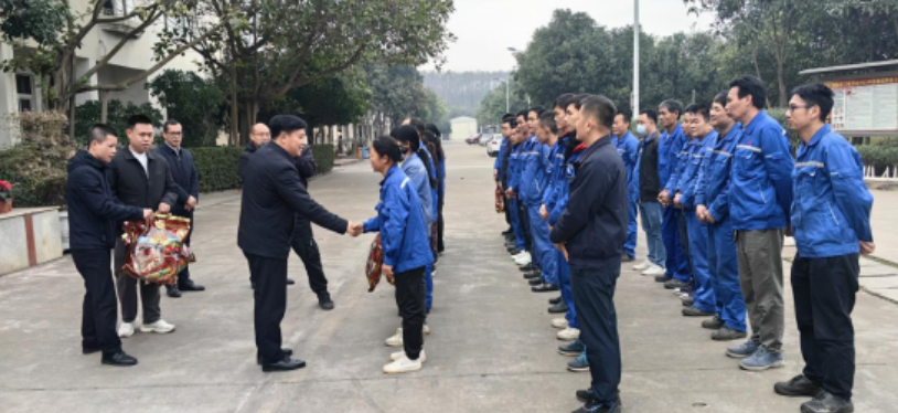 趙立平副總經理給員工派發(fā)節(jié)日紅包、大禮包