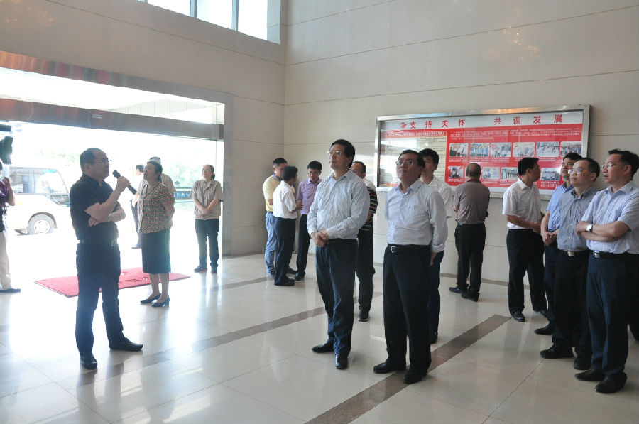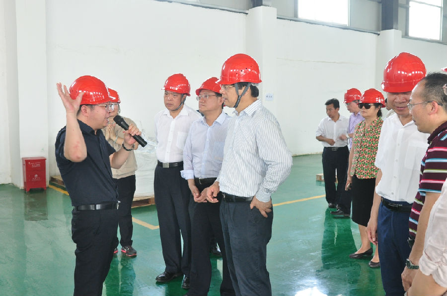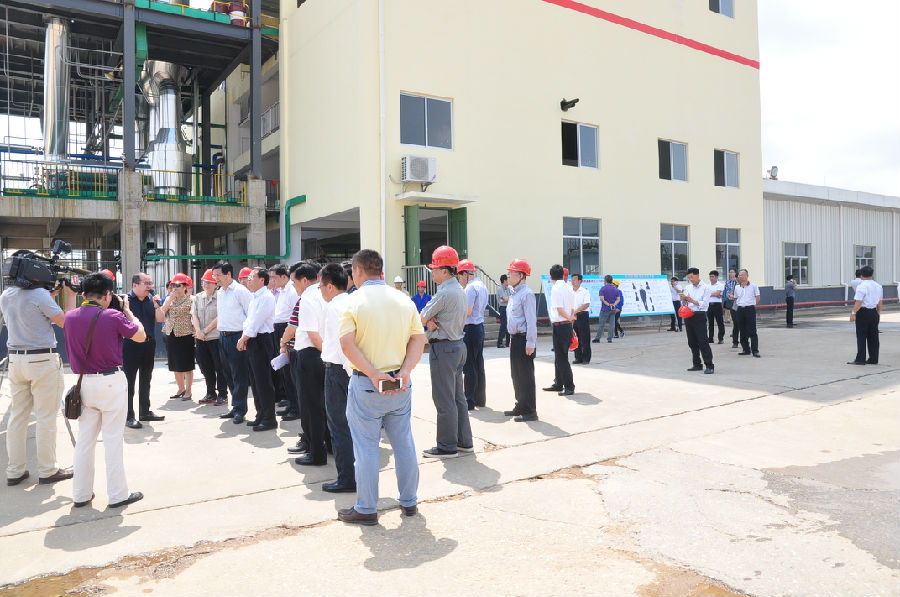 玉林市四大班子主要領(lǐng)導(dǎo)在博白縣主要領(lǐng)導(dǎo)和園區(qū)工委書記的陪同下參觀新建的鎳鹽車間