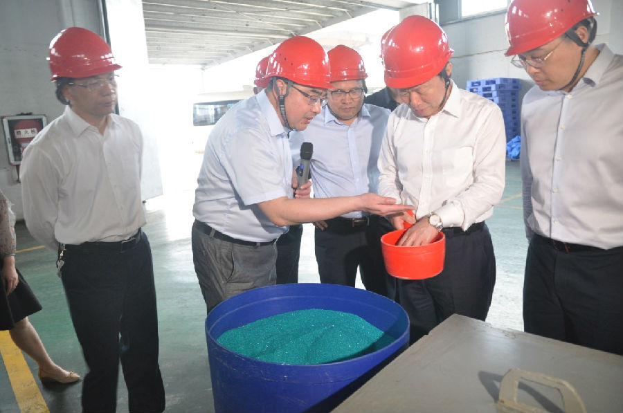 隨后,自治區(qū)黨委常委徐紹川一行在玉林市市長(zhǎng)韋韜等縣市領(lǐng)導(dǎo)陪同下,視察了鎳鹽生產(chǎn)基地,對(duì)生產(chǎn)線工藝技術(shù)、產(chǎn)品質(zhì)量和裝備特點(diǎn)進(jìn)行了詳細(xì)咨詢(xún)和了解。徐紹川部長(zhǎng)對(duì)我司生產(chǎn)基地現(xiàn)場(chǎng)的工作環(huán)境、先進(jìn)設(shè)備和產(chǎn)品實(shí)物質(zhì)量表示稱(chēng)贊,對(duì)我司生產(chǎn)的產(chǎn)品表示充分肯定,并希望廣西銀億不斷提升企業(yè)綜合實(shí)力,加大技術(shù)資金投入,提高產(chǎn)銷(xiāo)規(guī)模和經(jīng)濟(jì)效益,不斷提升在行業(yè)和市場(chǎng)中的地位,并叮囑陪同的市、縣領(lǐng)導(dǎo)同志要為廣西銀億的做大做強(qiáng)、可持續(xù)發(fā)展提供積極的幫助和支持。