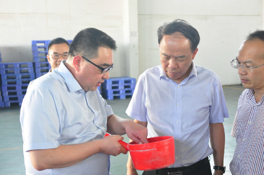 5月17日,肖文勝副市長及玉林市科技局局長一行蒞臨廣西銀億開展科技創(chuàng)新支撐產業(yè)高質量發(fā)展調研。肖文勝副市長一行在公司總經(jīng)理張學飛、黨委副書記章群宏的全程陪同下參觀了公司成品展示并視察了生產車間。